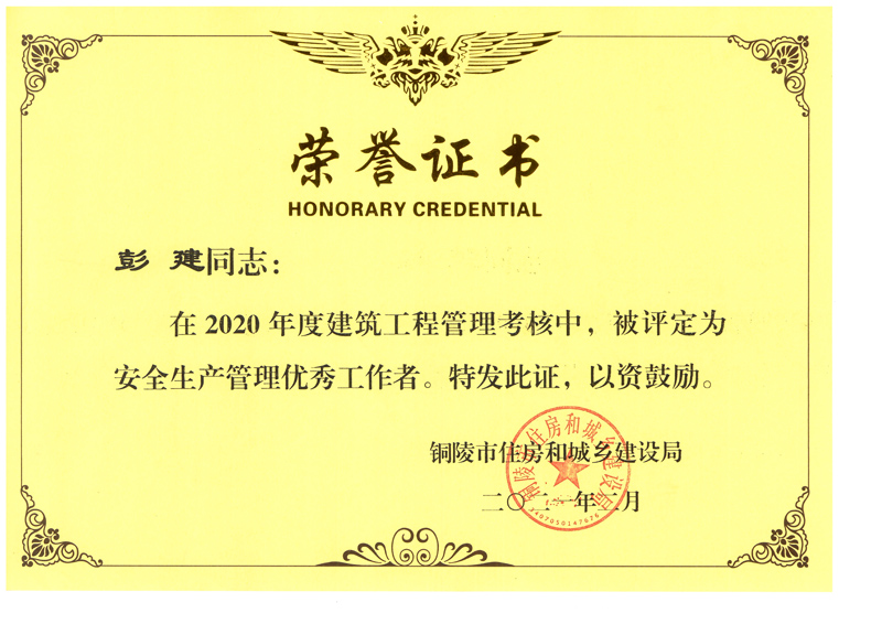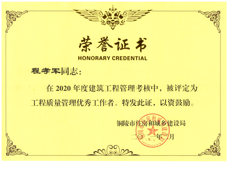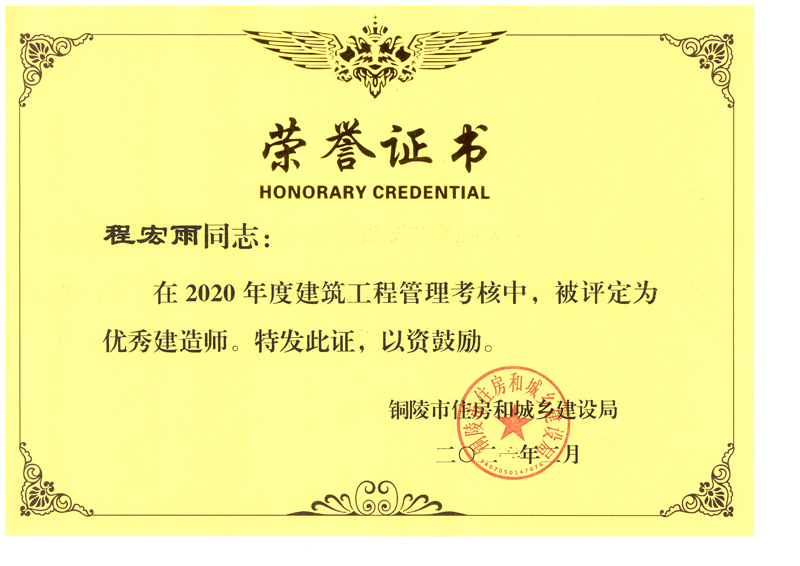 • 銅陵市2020年度優秀建造師(程宏雨)
