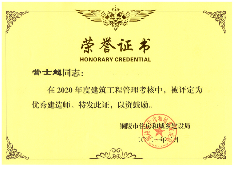 • 銅陵市2020年度優秀建造師(營士超)